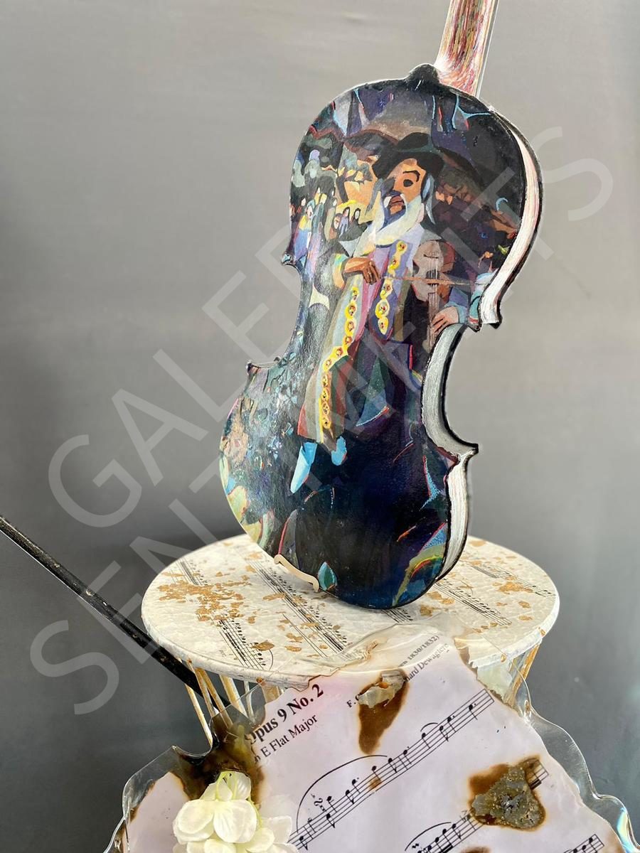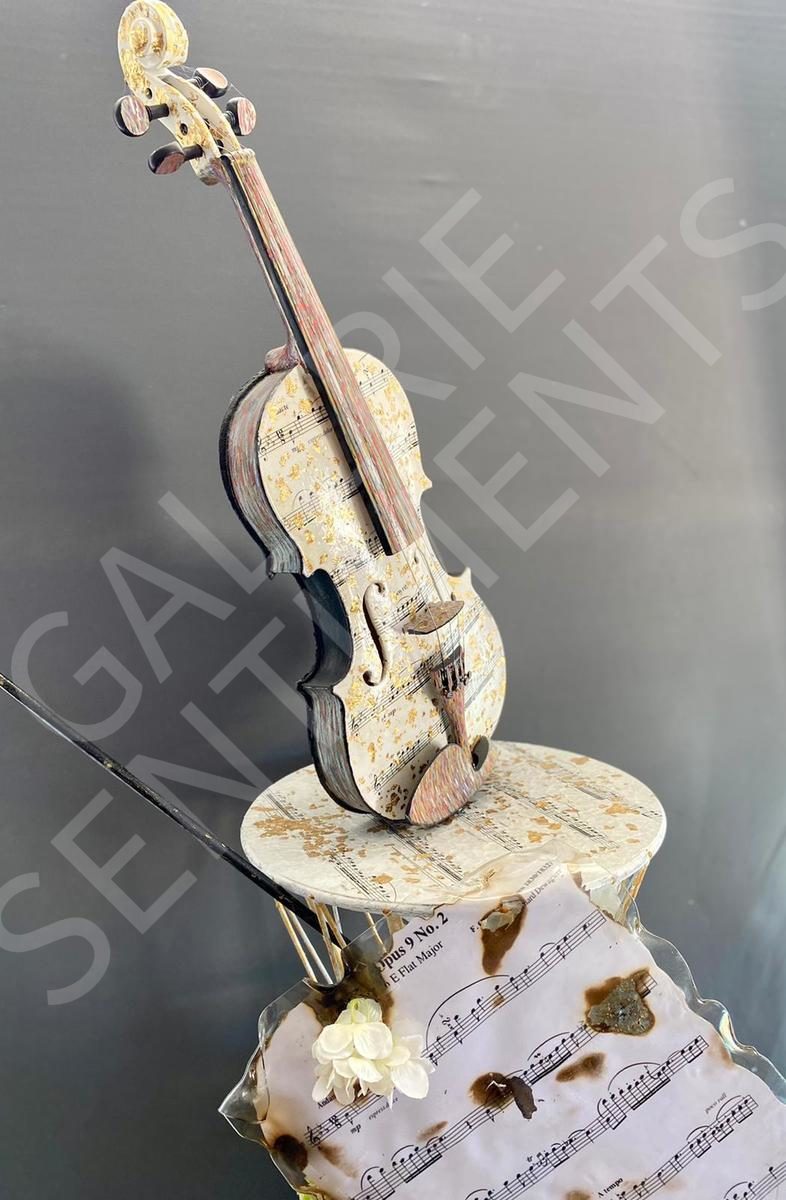 Instrument véritable et peinture sur socle tournant